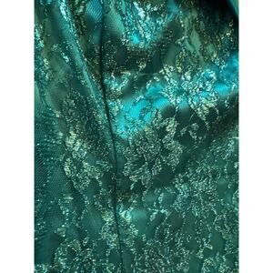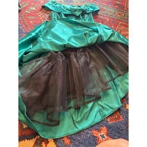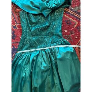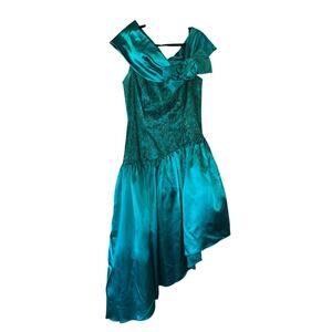 Vintage Jessica McClintock for Gunne Sax Green Satan and Lace Asymmetrical Formal Goen Dress. Classic 1980s vibe!!