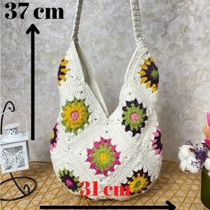Elevate your style with this handcrafted crochet crossbody bag, featuring a beautiful floral pattern. The blend of cream, orange, and teal colors adds a unique touch to any outfit.