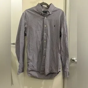 Ralph Lauren Button Down Shirt Mens Large Long Sleeve Purple White Gingham