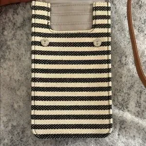 Stylish crossbody bag featuring a chic striped design in tan and black. Perfect for everyday use.