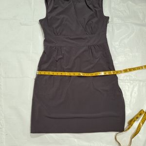 Athleta Dark Grey Dahlia V-Neck Sleeveless Dress, Side Zippered Closure, Side Pockets, Rear Hem Slit, Stretchy, Excellent Used Condition