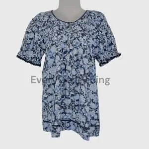 * Features : 100% Cotton / Beautifully textured pullover top features pineapple smocking, lace detailing, elastic cuffs and henley placket with button loops