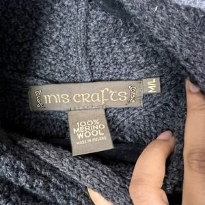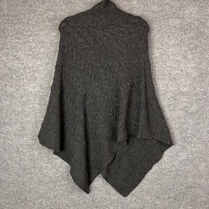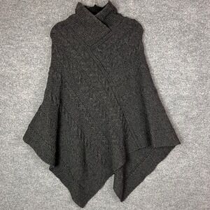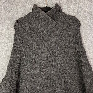 Inis Crafts Womens Charcoal Gray 100% Merino Wool Cable Knit Poncho Cape M/L