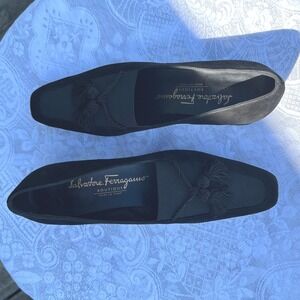 Ferragamo Black Suede "Poker" Tassel Block Heel Pumps Box - Y2K Vintage (Size 7)