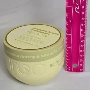 - A rejuvenating gentle body scrub with glycerin and camelia extract, boosted with citamin C & manuka honey to soften and brighten the skin.