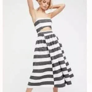 RARE Mara Hoffman Striped Gray and White Cutout Midi Dress NWT