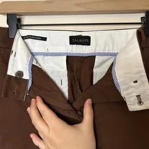 Keywords: Talbots, chino pants, straight leg, brown trousers, women's pants, classic fit, business casual, work pants, everyday wear, comfortable, tailored, staple, wardrobe essential