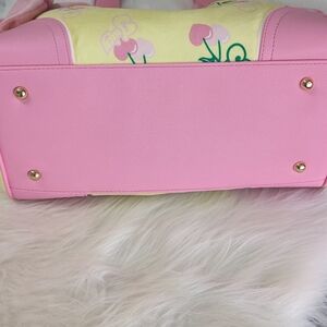 Juicy Couture, Daydreamer Bag, Y2K Fashion, Velour Tote, Cherry Print, Vintage Juicy, 2000s Aesthetic, McBling, Barbiecore, Retro Handbag, Velvet Purse, Juicy Cherry, Designer Tote, NWT, Rare Find, Heart Charm, Kawaii Fashion, Coquette Aesthetic, Soft Girl, Girly Style, Iconic Handbag, Collectible Fashion, Pink and Yellow tote