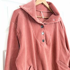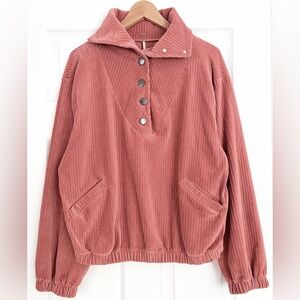 Free People Serena Corduroy Pullover in Size S. Soft pink corduroy pullover. Slouchy silhouette. Button closures on the placket. Elastic waistband. Hip pockets. Stock pic included to show fit. In excellent condition. Laying flat measurements: 23” PTP 22” shoulder to hem **Please review pics and listing carefully. If you have any questions I’m always happy to answer.** Please allow for slight variation in color. BIN 11