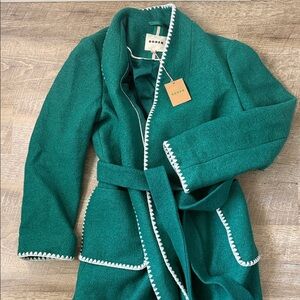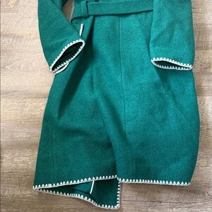 NWT Boden Blanket Stitch Wrap Coat In Alpine Green Size Medium