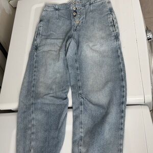 Loved these jeans, but they aren’t fitting me so well postpartum. In excellent condition, cropped barrel leg.