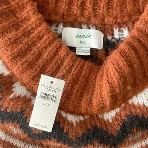 Stay cozy with this Aerie knit sweater. Features a stylish pattern in rust and white. Perfect for casual wear.