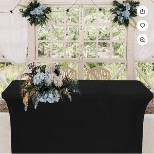 This brand new 6' ft. spandex fitted stretch tablecloth in black is perfect for various occasions such as holidays, birthdays, and parties.
