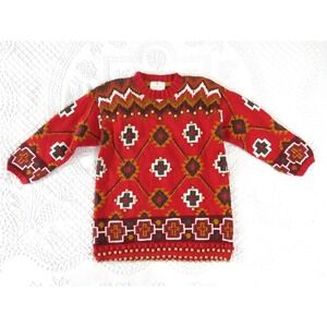 Vintage 90s Rosanna Medium Hand Knit Aztec Southwestern Beaded Tunic Sweater