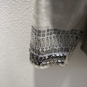 Chico's Platinum Denim tan beaded jean jacket size 2