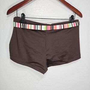 Sonoma Y2K Brown Colorful Striped Belt Swim Bottom Shorts