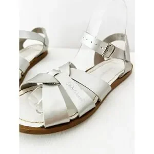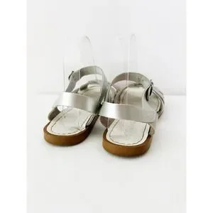 Salt Water Sandals Silver Metallic Leather Strappy Flat Sandal Women's 8