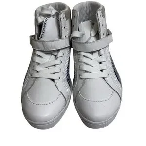 Step out in style with these Puma high-top sneakers. Featuring a sleek white design with eye-catching blue and silver accents, these sneakers offer both fashion and function. The high-top silhouette provides ankle support, while the durable construction ensures long-lasting wear. Perfect for adding a touch of sporty chic to any outfit.