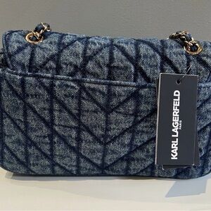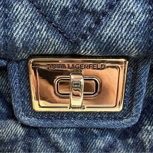 $328 DENIM Karl Lagerfeld Agyness Crossbody Quilted Shoulder Hand BAG CHARM New