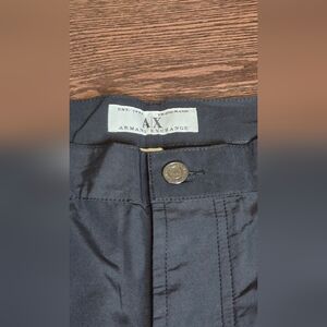 Elevate your wardrobe with these stylish Armani Exchange black dress pants. Distinguished, Comfortable, Classy and Unique. Perfect for official and all occasions. The pants are soft to the touch with a touch of elegance and sophistication. The material is light, consisting of 60% Cotton, 40% Nylon. Waist 36 X 34.