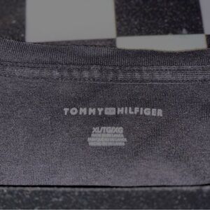 Sleek black short sleeve tee by Tommy Hilfiger. Features a subtle logo detail. Ideal for casual wear.