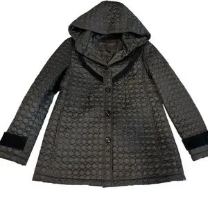 Betsey Johnson Coat Black Mini Circle Quilt Lightweight Hooded Jacket Size M