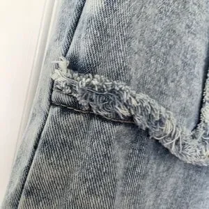 Such unique frayed seams, giving them a distressed or patchwork-like appearance.