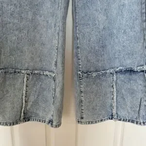 Patchwork Panelled Frayed Seam Wide Leg High Rise Jeans Size 31
