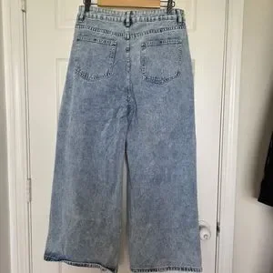 SHEIN Patchwork Panelled Frayed Seam Wide Leg High Rise Jean