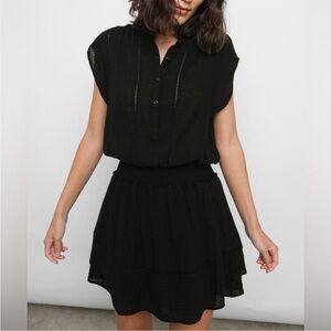 RAILS Angelina Black Lace Detail Dress Smocked Waist Linen Blend Sz XL