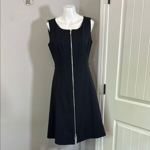 Lafayette 148 New York Carlina Dress Black Sleeveless Front Zip Sheath LBD Sz 6