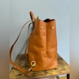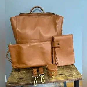 Fawn Design Brown Faux Leather Backpack Set with Gold Accents.