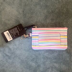 Brand new SCOUT IDKase Card Holder, specifically in a colorful striped pattern from the "Silly Spring" collection.