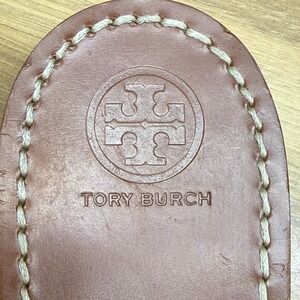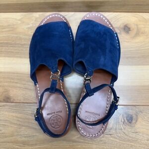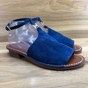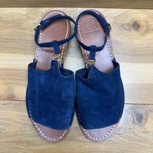 Tory Burch Gemini Ankle Strap Sandals 8.5 M Blue Suede Gold Metal