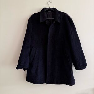 Elegant dark coat by Pierre Cardin. Timeless design for versatile wear.