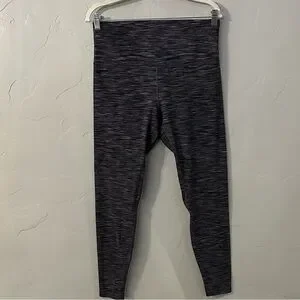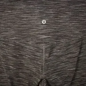 Lightweight, high-rise yoga leggings. Buttery-soft and sweat-wicking. Nulu™ fabric. Engineered to feel like your go-to, lightweight, second-skin layer. Ankle length. Hidden waistband pocket-holds a key. Gray/black/white spacedye stripe pattern. Materials: 81% nylon, 19% elastane.