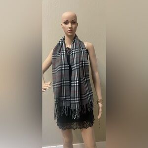 Burberrys Gray Plaid Scarf