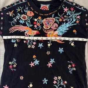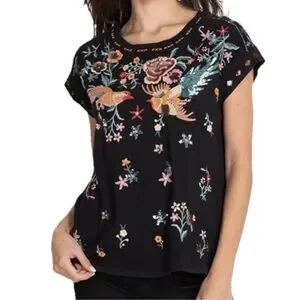 Johnny Was Soha Relaxed Sequin Tee XS Black Embroidered