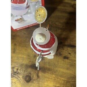 The JCPenney Home Collection Rare Lighted Acrylic Chef Snowman is a Christmas figurine made of mixed materials, primarily plastic. This vintage piece from the 2000s features a colorful snowman design with a frosted finish, perfect for adding a festive touch to any holiday decor. The figurine comes in its original box, making it a great addition to any collection of seasonal decorations. Note: See pictures for vintage condition. There is no screw for the bottom, but the battery holder stays in place.