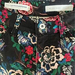 Anthropologie Pilcro Floral Mid Rise Skinny Jeans 27 Stretch Denim Cottagecore