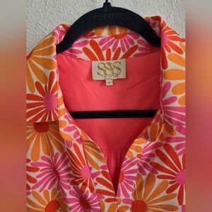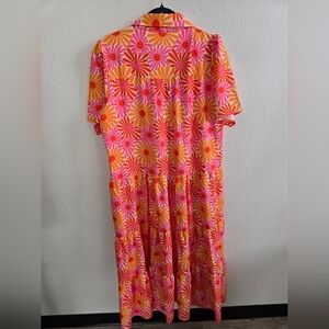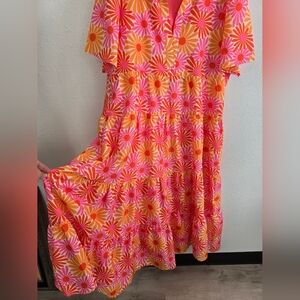 SSYS the label The Short Sleeve Emery Midi Dress in Pink Orange Daisy XL