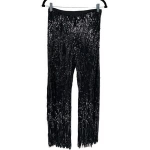 H&M Studio S/S 2021 Fringed Meshed Sequin Black Trousers Size 2