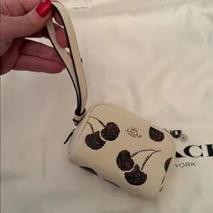 🍒🩶 Coach NWT Chalk Pouch Wristlet With sparkling Cherry Print /Silver Hardware