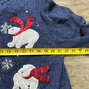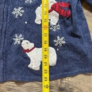 Vintage Polar Bear Holiday Womens Sweater Cardigan Y2K Winter Embroidered Zip L. Ships from smoke free home. One of the puff balls missing from zipper, bears have blue lint on them from washing.