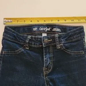 Cat And Jack Super Stretch Straight Dark Blue Adjustable Waist Jeans 10. Very good pre-owned condition, has some fading on knees, see last photo Please see pictures for measurements.