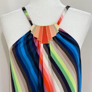 Trina Turk Halter Shift Dress Rainbow Psychedelic Wave Stripe Dress Size M