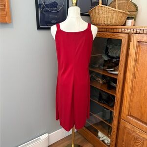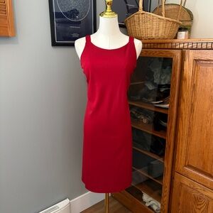 Details: Timeless vintage sleeveless sheath dress in a bold, true red. Simple scoop neckline with a flattering, body-skimming silhouette that hits around the knee. Minimal, versatile, and effortlessly chic — the kind of piece that works for events, holidays, or layering year-round.