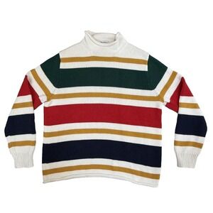 J Crew Heritage Cotton Roll Neck Sweater Mens L Stripe Pullover BM118 Chunky