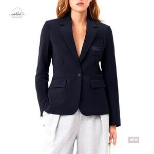 Brand new, never worn, and in flawless condition — this sophisticated wool blend blazer offers a sleek, tailored fit perfect for business casual settings, the office, or elevated casual wear. The slim fit is refined and comfortable, finished with distinctive embroidered detailing.