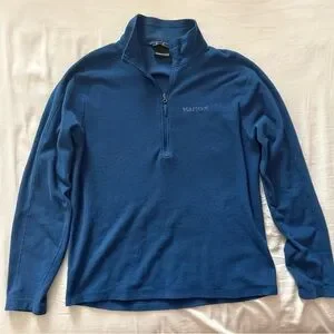 This Marmot quarter zip pullover is a lightweight fleece that’s ideal for hiking, camping, travel, or everyday casual wear. The rich blue color pairs easily with jeans, joggers, or hiking pants, and the soft fleece material makes it comfortable without feeling bulky.